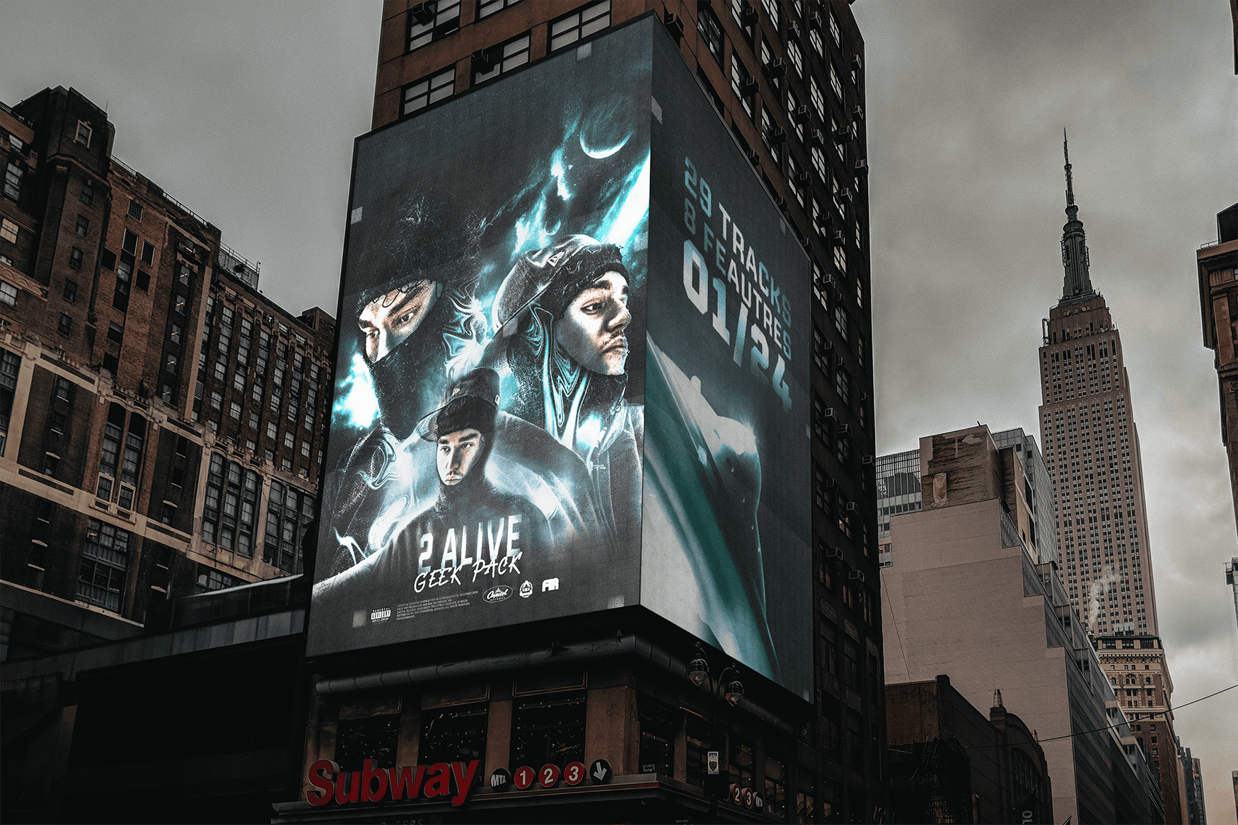 I used After Effects’ 3D Camera to create a seamless looping animation of the album cover, designed for platforms like Spotify where listeners can engage with the artwork as the music plays. To expand the release beyond streaming, I extended the visual system into large-scale NYC billboard mockups, exploring how the album could live in both digital and physical spaces.